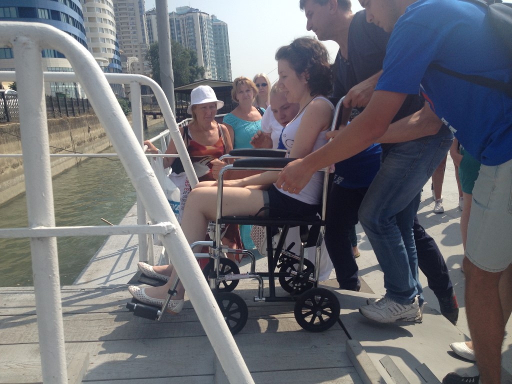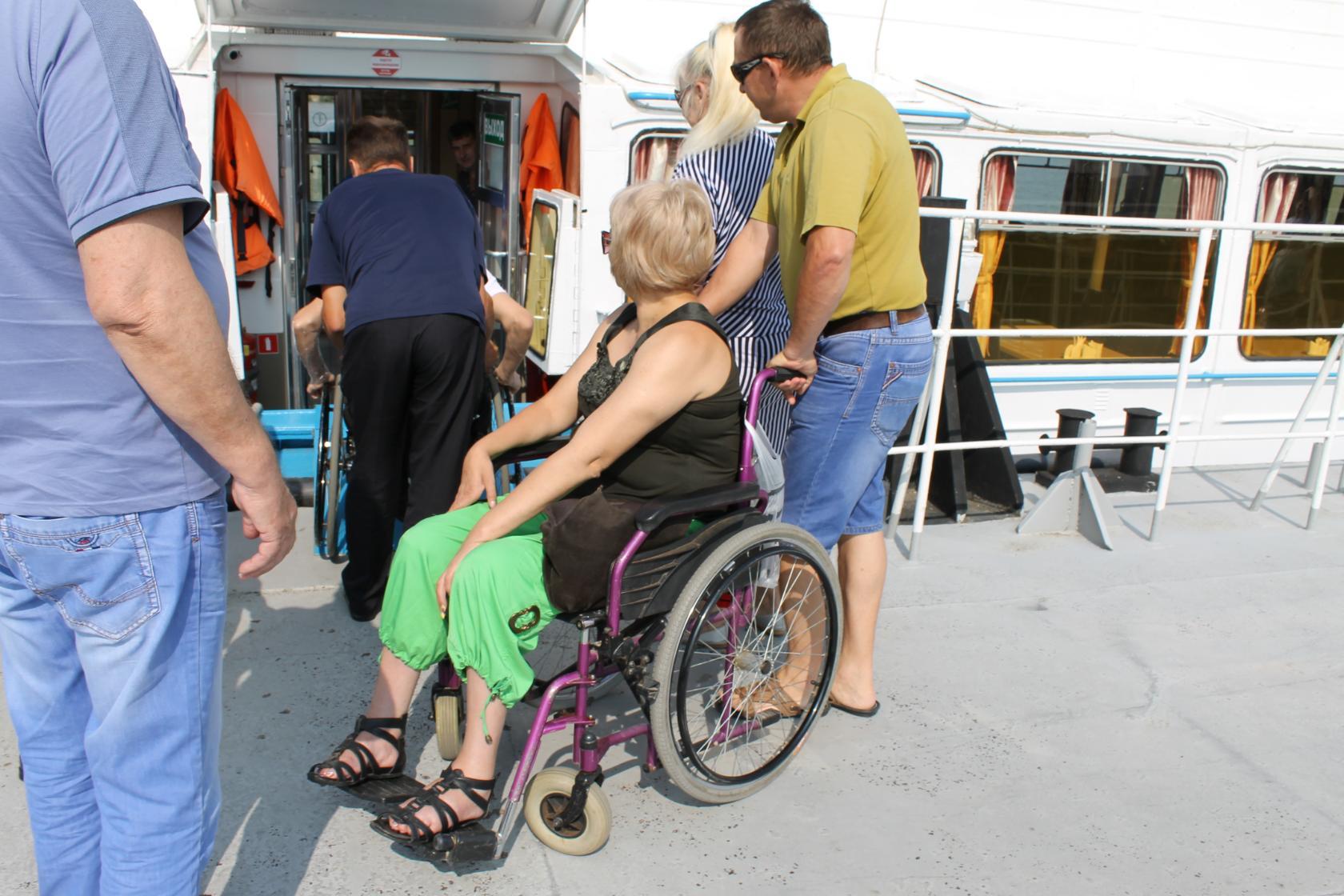 На набережной был организован беспрепятственный подъезд транспорта к самому теплоходу. Приглашенные волонтеры помогали ребятам с ограниченными возможностями въехать, а также зайти на теплоход. Следует отметить, что помощь волонтёров сопровождала на всем пути следования.