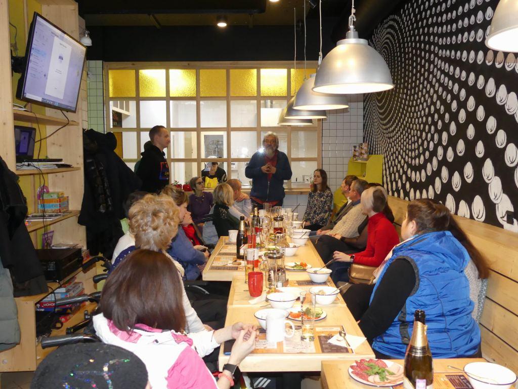 Руководитель регионального общества РС Владимир Павленко предложил для проведения интересное место. В большинстве случаев подобные мероприятия проходят в конференц-залах. Но в этот раз, организаторы решили удивить, и чтобы эмоции от мероприятия остались надолго. Местом было выбрано, кафе-пельменная под названием «Аркадий», в Липецке. Русская кухня и антураж расположили всех на общение, чувства замкнутости не было ни у кого. Это и стало достижением, учитывая, что это второе мероприятие пациентской организации РС в Липецкой области.