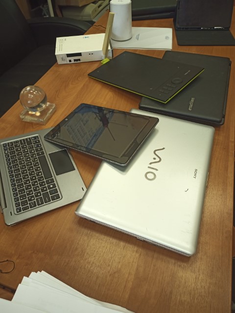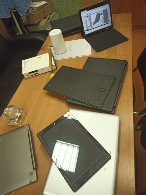 На базе мощного планшета, мы собрали лагерный «сервер», который использовался нами для проведения занятий и мастер-классов (так программу обучения навыкам рисования задействовали на графические планшеты и азы графики можно было отрабатывать, не вставая с места). Для организации базовой станции использовался современный интернет цетр (роутер) LTE Cat. 11 с внешней направленной антенной. Данное решение позволило организовать на территории лагеря устойчивую связь с возможностью выхода в интернет (до 10 человек одновременно). Так же непременным аксессуаром был компактный генератор, для различных нужд. Для связи на небольшие расстояния использовались переносные радиостанции любительского диапазона.