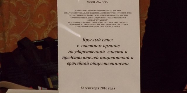 С 15.00 до 20.00 в ТЦСО № 8 Филиал «Бутырский» состоялся Круглый стол для людей с рассеянным склерозом с участием органов государственной власти и представителей пациентской и врачебной общественности, организатором которого выступила Межрегиональная общественная организация инвалидов «Московское общество рассеянного склероза (РС)» при поддержке Департамента здравоохранения города Москвы и Департамента социальной защиты населения города Москвы.