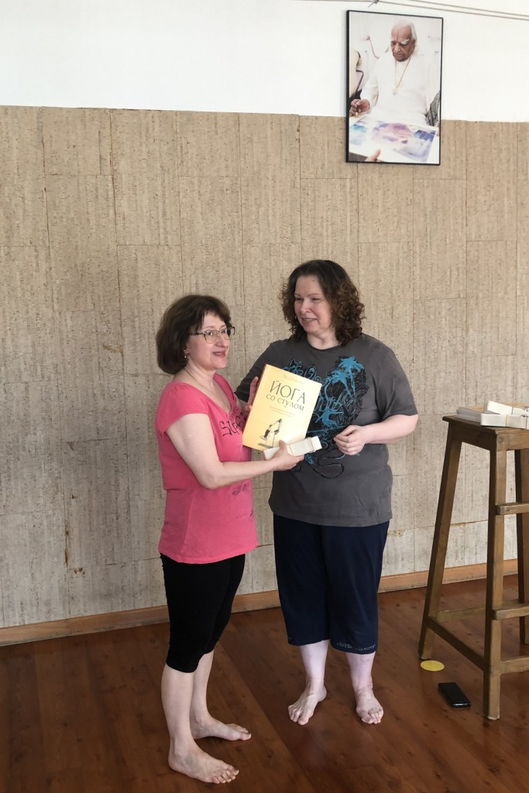 , потому что все получили подарок от МООИ «Московского общества рассеянного склероза (РС)» (МООИ «МосОРС») - книгу Эяля Шифрони «Йога со стулом» и специальный йоговский ремень, который с удовольствием вручила Руководитель программы от общества Наталья Зрячева.