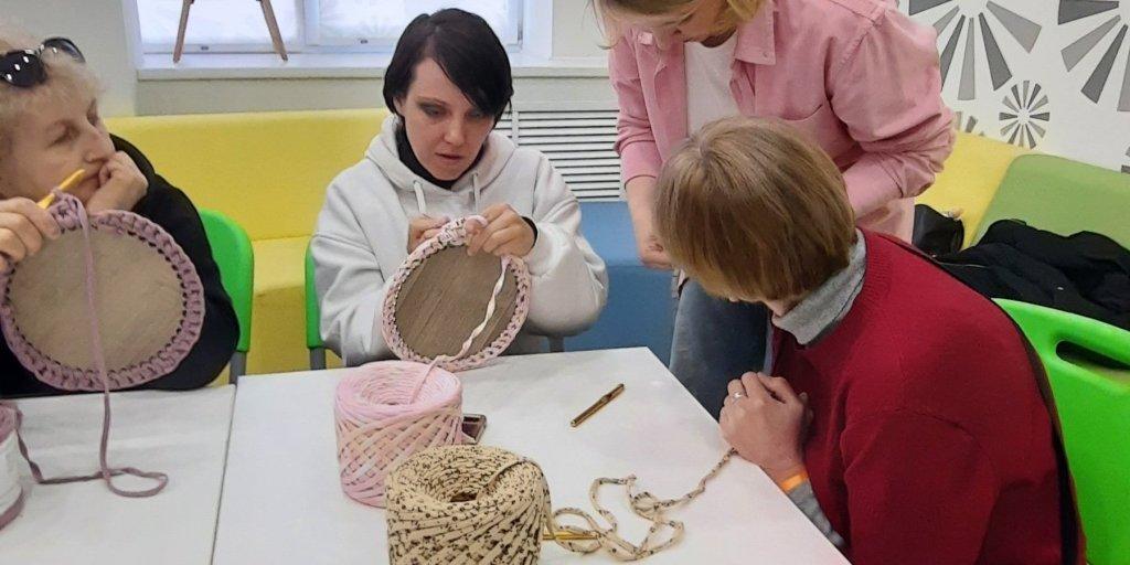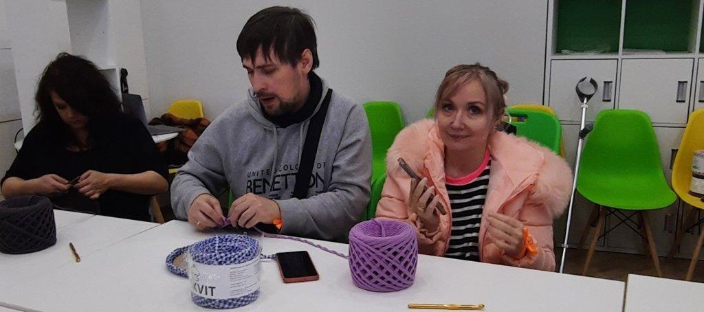 В продолжение нашего дня был организован второй мастер-класс по вязанию крючком корзинки из трикотажной пряжи, который провела Юлия Стрикун. Мы познавали «азы» вязания крючком, выбрав основу под дно корзинки и цвет пряжи, мы приступили к провязыванию дна и стенок корзинки. Спасибо Юлии за помощь, терпение и готовность помочь каждому, кто испытывал трудности с выполнением. Жаль, не все смогли закончить свою работу, так как требуется ловкость и сила в руках для её выполнения, но ничего – все взяли работу на дом…надеемся, что скоро мы увидим готовые работы.