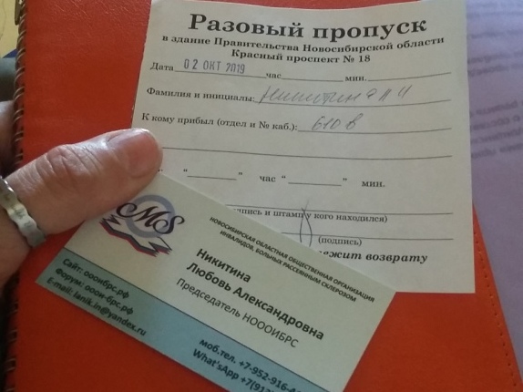 Второго октября 2019 года в областной администрации г. Новосибирска состоялась личная встреча председателя НОООИБРС Никитиной Л.А. с заместителем министра здравоохранения Аксёновой Е.А.