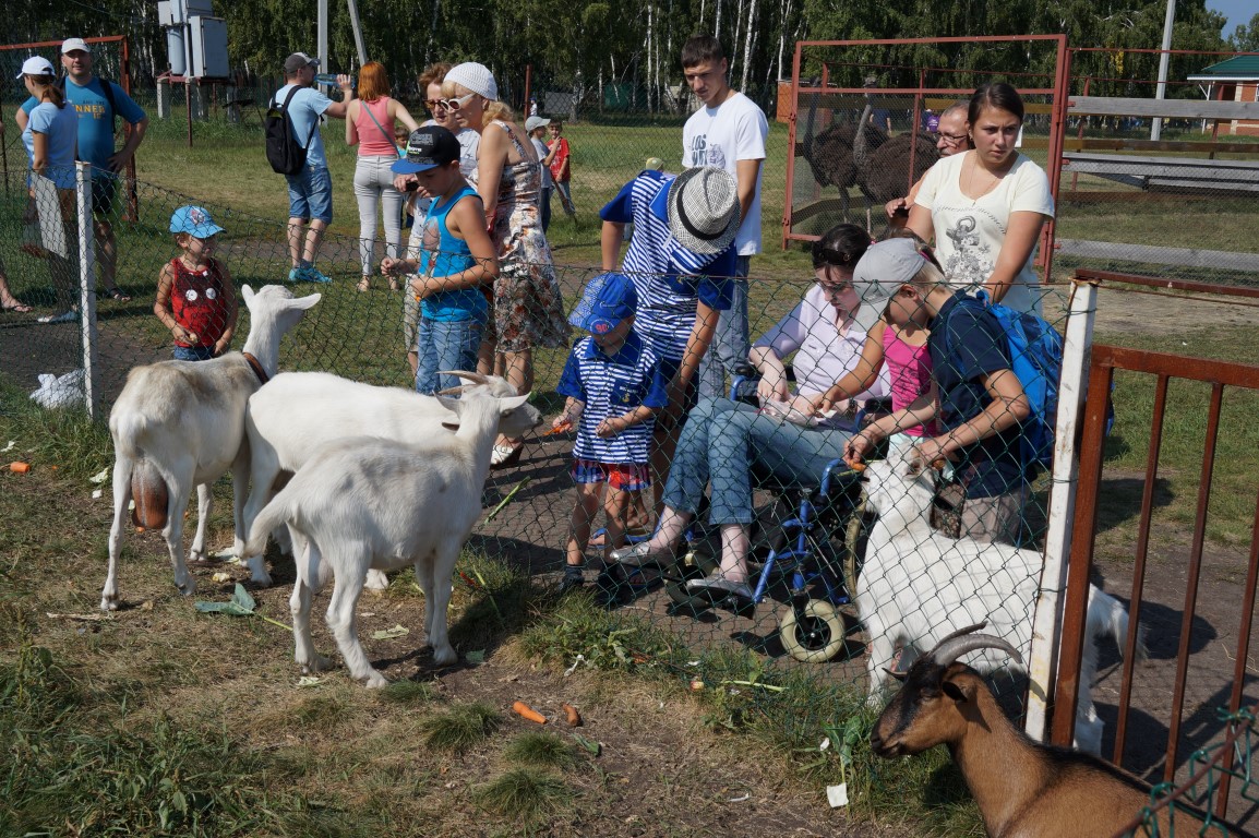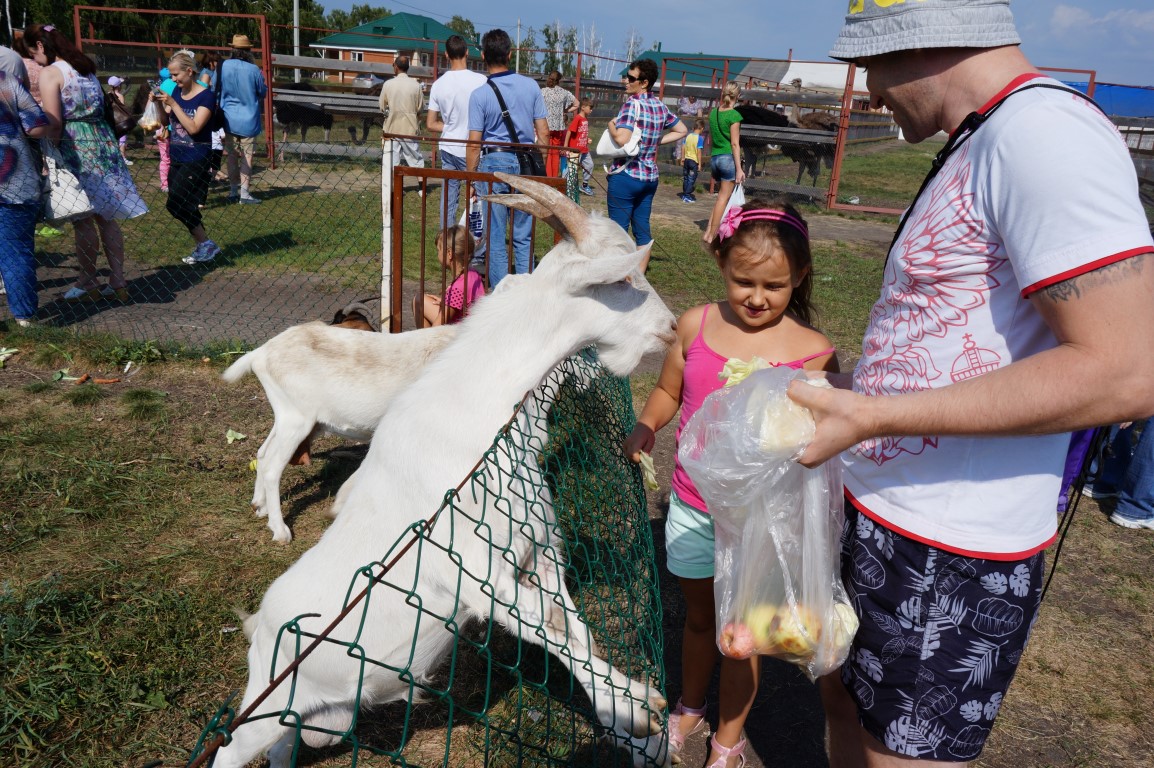 Самочки – серенькие и скромные. Самцы – отличаются от них и пушистостью, и переливами оперения, они угольно черные, с белыми кончиками по краям крыльев. Далее, получив максимум впечатлений, пошли дальше и увидим загончики с осликами, козами, лошадьми и многими другими животными, которых можно было и покормить, и погладить. Наконец, выходим на Птичий двор. Это отдельное удовольствие, там мирно прогуливаются ухоженные гуси и гусыни, индюки с индюшками. Все породистые и от этого очень колоритно выглядящие. Надо отметить, что мирно и степенно они прохаживались ровно до нашего появления, потому что дальше они оживились неимоверно. Каждый привлекал к себе внимание своими личными фирменными способами. Гуси просовывали клювы в сетку, индюк надувал сморщенный красный зоб. Смысл волнения состоял в требовании срочно дать чего-нибудь поесть. Честно говоря, нам было очень интересно рассматривать их вблизи – там не просто бегали куры с утками, а очень породистые и необычные птичьи экземпляры.