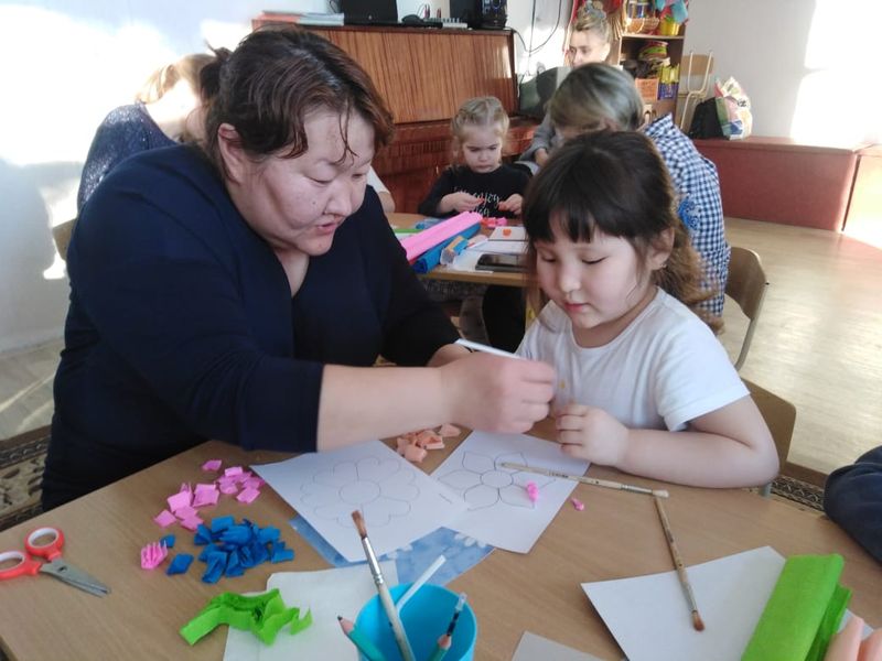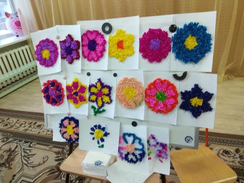 Первенцами были родители и воспитанниками старшей группы «Солнышко», а так же выпускники данного детского сада. Мы учились творить красоту методом торцевания. Ребятишкам все очень понравилось и по окончанию мастер класса они все взяли заготовки домой, чтоб еще дома сделать поделку.