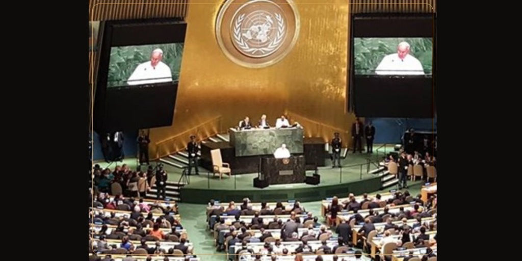 25 сентября 2015 года утром, в пятницу, папа Римский Франциск посетил штаб-квартиру ООН и выступил с трибуны Генеральной ассамблеи всемирной организации.