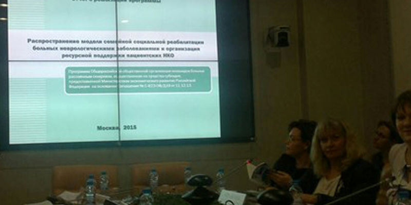 В рамках защиты Ян Владимирович Власов выступил с докладом по теме «Распространение модели семейной социальной реабилитации больных неврологическими заболеваниями и организация ресурсной поддержки пациентских НКО» . Он рассказал о реализации в 23 субъектах РФ программы разработанной ОООИБРС, основной целью которой является повышение качества работы социально ориентированных НКО, работающих с пациентами с неврологическими заболеваниями на основе развития модели семейных социально-реабилитационных центров в регионах и осветил её основные мероприятия и достаточно значимые результаты. Так же выступление Президента ОООИРБС затрагивало значимость партнёрских организаций и освещало дальнейшую работу программы.