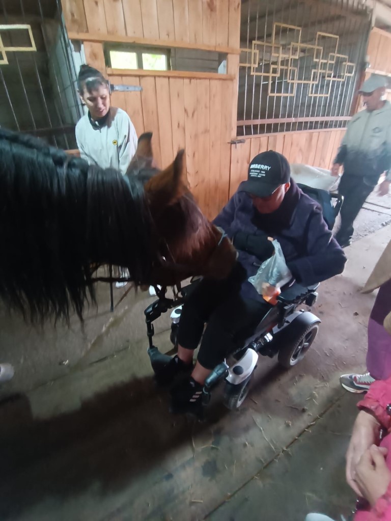 Для гостей комплекса была организована познавательная экскурсия по территории, знакомство с кроликами и лошадьми, а главное -иппотерапия, лечебная верховая езда.