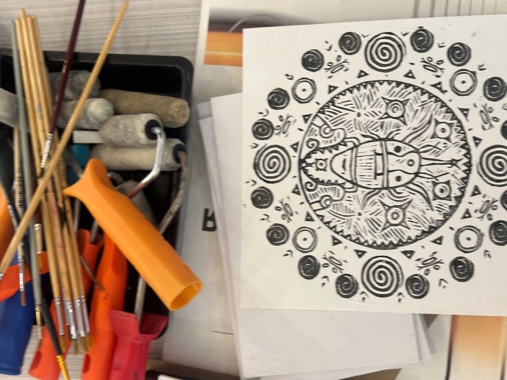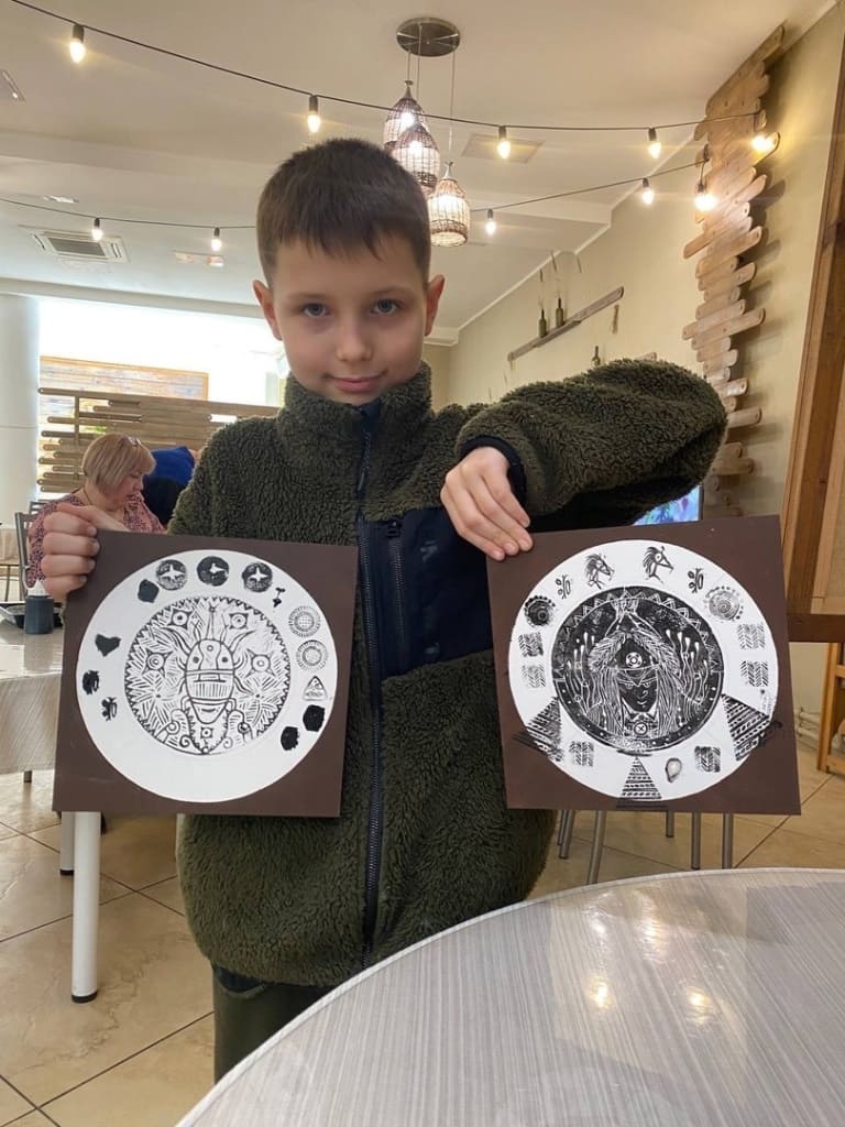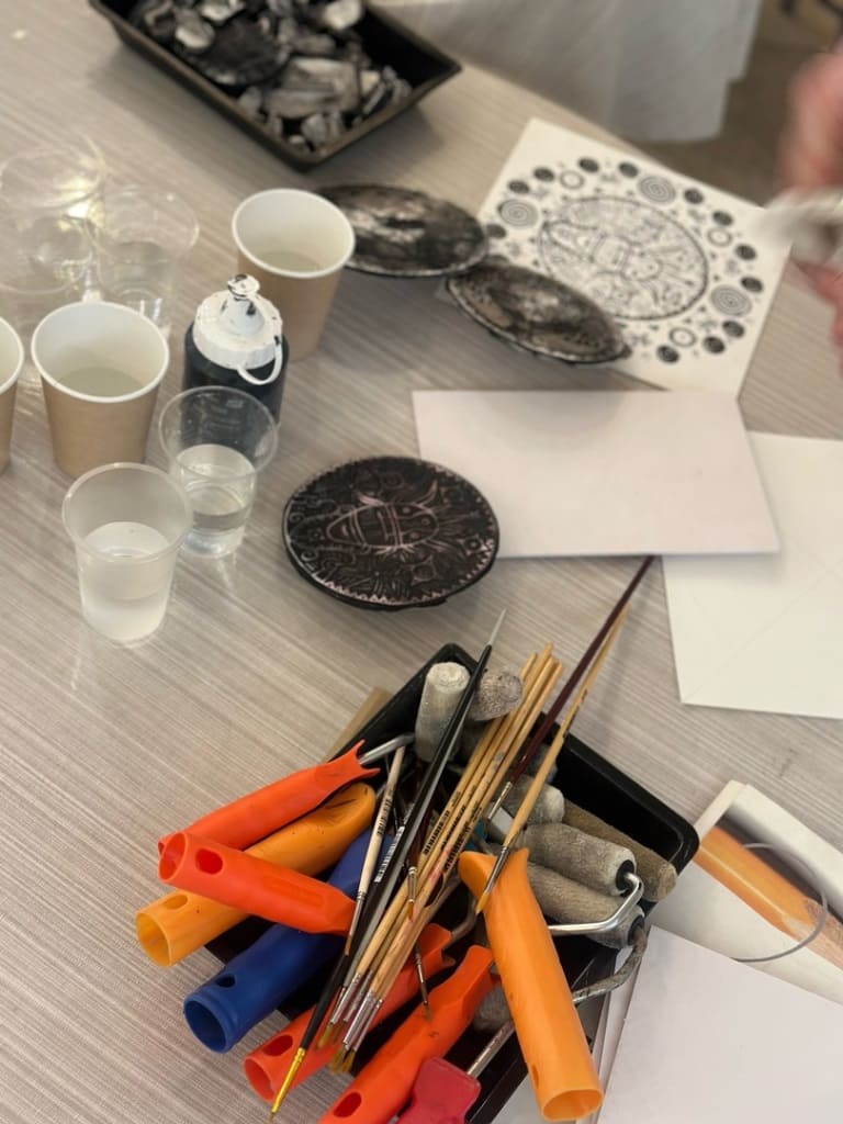 Гости с радостью приняли участие в мастер-классе и сделали себе линогравюру. Художник был рядом и помогал, чтобы у каждого рисунок с личиной, девушкой-хакаской и шаманом вышел неповторимым.
