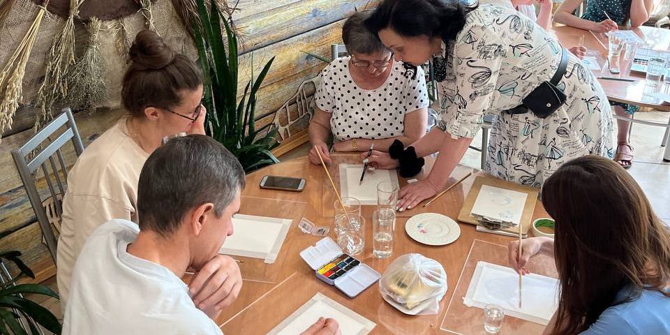 Татьяна Корнева провела для гостей мастер-класс по акварели, а в этнокафе были подготовлены вкусные угощения и травяной чай.
