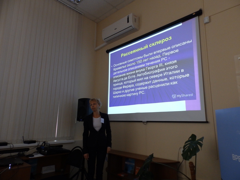 - Абраменко Светлана Владимировна, врач-невролог, с докладом «Прогноз рассеянного склероза. Эпидемиология и этиология рассеянного склероза, современные диагностические критерии. Генетика. Лекарственная терапия. Новейшие препараты, применяемые для лечения рассеянного склероза.