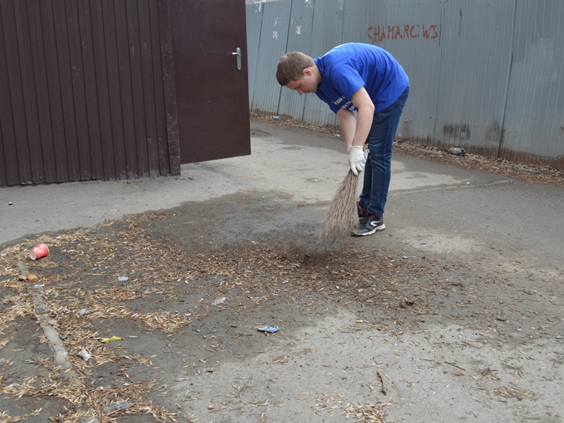Юноши и мужчины вынесли весь мусор на помойку, девушки начали мыть ролл-ставни. Представители сильного пола помогали своей слабой половине всеми возможными силами и способами.