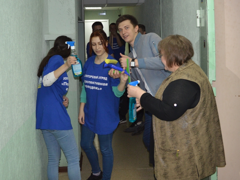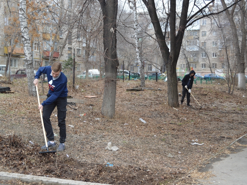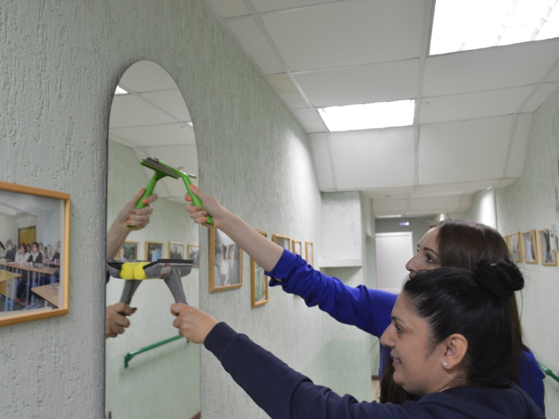 Все задействованные работники самоотверженно занимались уборкой. Мероприятие проходило четко по программе, как по часам: все собрались, зарегистрировались, получили инвентарь и задания. Юноши и мужчины остались на улице подметать асфальтные дорожки, собирать мусор и прошлогоднюю листву с газонов.