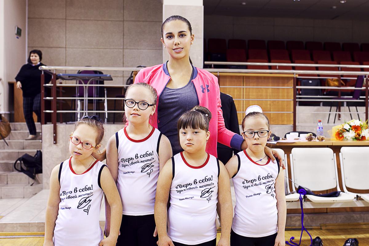 Впервые в Самарской области, в качестве участников, на такое мероприятие были приглашены дети с синдромом Дауна, которые занимаются на отделении художественной гимнастики в спортивном клубе «РГ-тренинг». С помощью своего тренера девочки работали в группе с остальными спортсменками, в составе большой, дружной гимнастической семьи.
