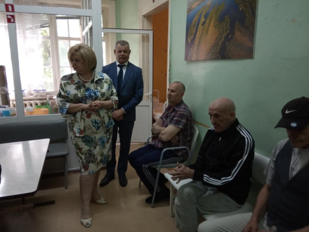 Уполномоченный и общественники осмотрели психиатрическое соматогериатрическое отделение, располагающееся в деревянном корпусе. Условия пребывания пациентов здесь сложно назвать удовлетворительными. Помимо общей скученности в палатах, которая характерна для всех отделений, здание требует ремонта и модернизации: полы в заплатках, душевые и санузлы не соответствуют современным представлениям об обеспечении гигиены в 21 веке. Вместе с тем, все больные выглядят ухоженно и в этом большая заслуга персонала, осуществляющего в столь непростых условиях хороший уход за больными.