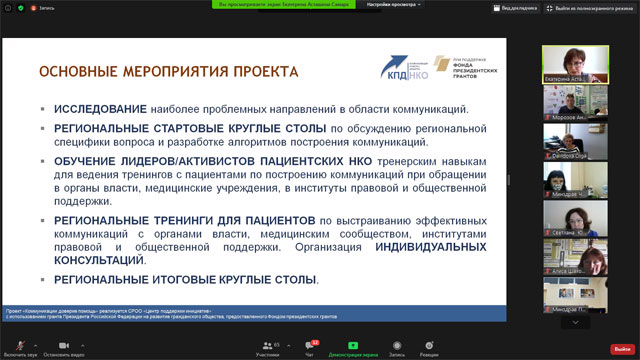 Коммуникации пациентов с медицинскими учреждениями, органами власти, институтами правовой, общественной поддержки пациентов: результаты и эффекты проекта «Коммуникации – доверие - помощь», реализованного в 2020 году (Е.Е. Асташина, руководитель проекта «Коммуникации-доверие-помощь», г. Самара)