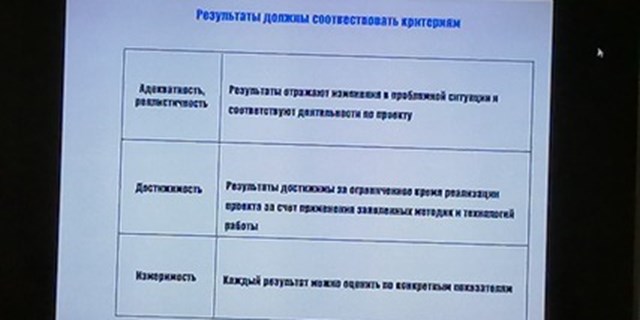 Участники почерпнули массу полезной информации для оформления заявки проекта: необходимость детального отображения количественных и качественных результатов проекта, описание в календарном плане результатов мероприятий проекта, фиксацию в бюджете только тех расходов, которые связаны с реализацией проекта и многое другое.