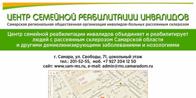 Самарская региональная общественная организация инвалидов – больных рассеянным склерозом (СОРС) на регулярной основе организует и проводит занятия различной физической, психологической и интеллектуальной активности на базе Центра семейной реабилитации инвалидов для людей с диагнозом рассеянный склероз.