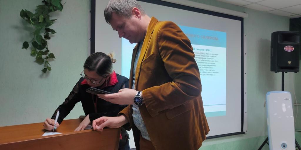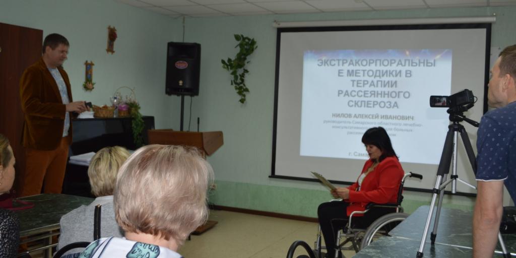 После перерыва состоялась мицинская лекция «Экстракорпоральные методики в терапии рассеянного склероза», прочитал ее Нилов Алексей Иванович руководитель Самарского областного лечебно-консультативного центра для больных рассеянным склерозом.