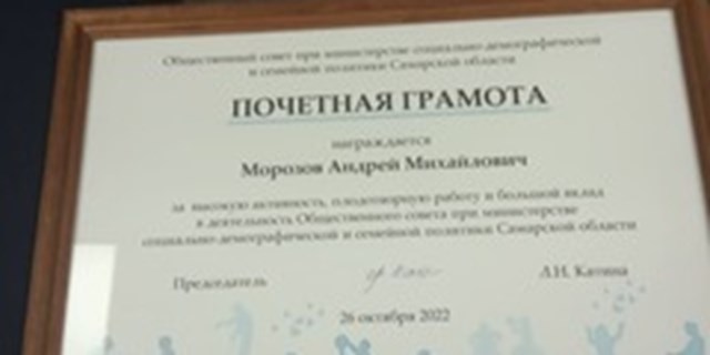 Самарскую региональную общественную организацию инвалидов-больных рассеянным склерозом представлял и был награжден почетной грамотой Андрей Морозов.