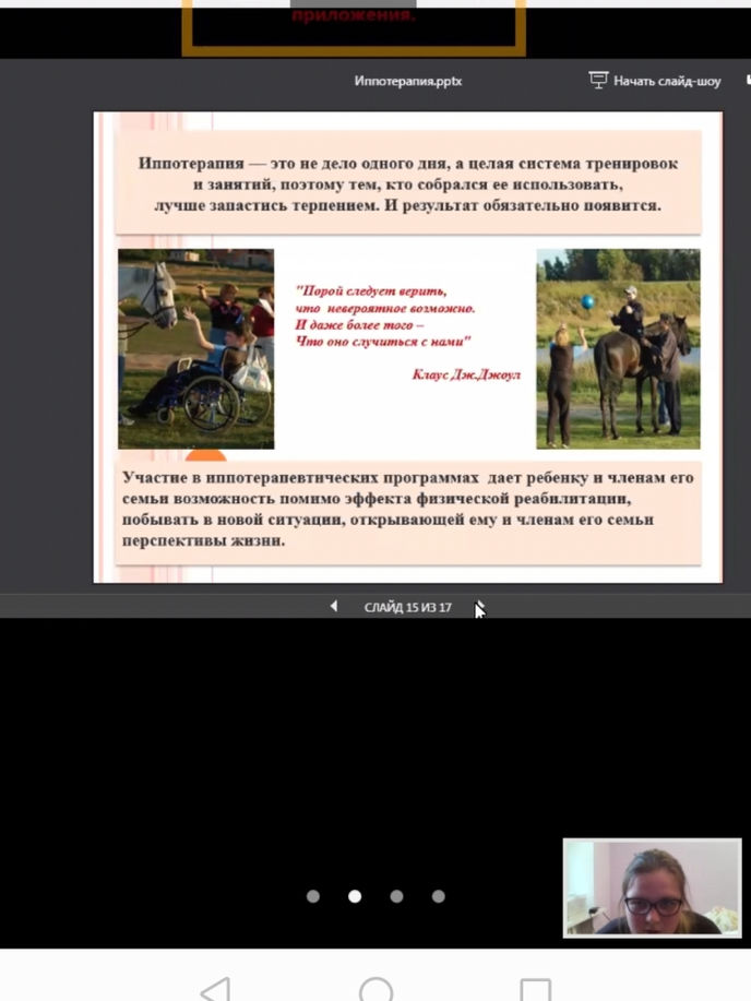 Лекция на тему «Иппотерапия, как метод реабилитации» прочитала специалист по реабилитации Самарского центра иппотерапии - Попкова Анастасия.