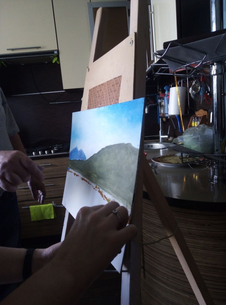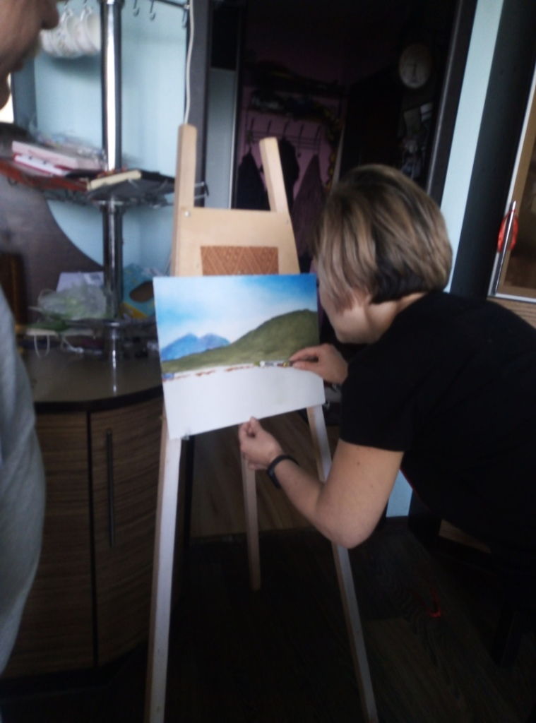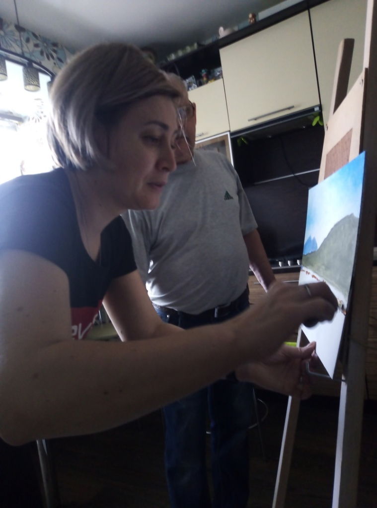 Но теория не обошлась без практики… В итоге была написана первая в жизни Анны картина маслом. Урок был очень увлекателен и востребован.