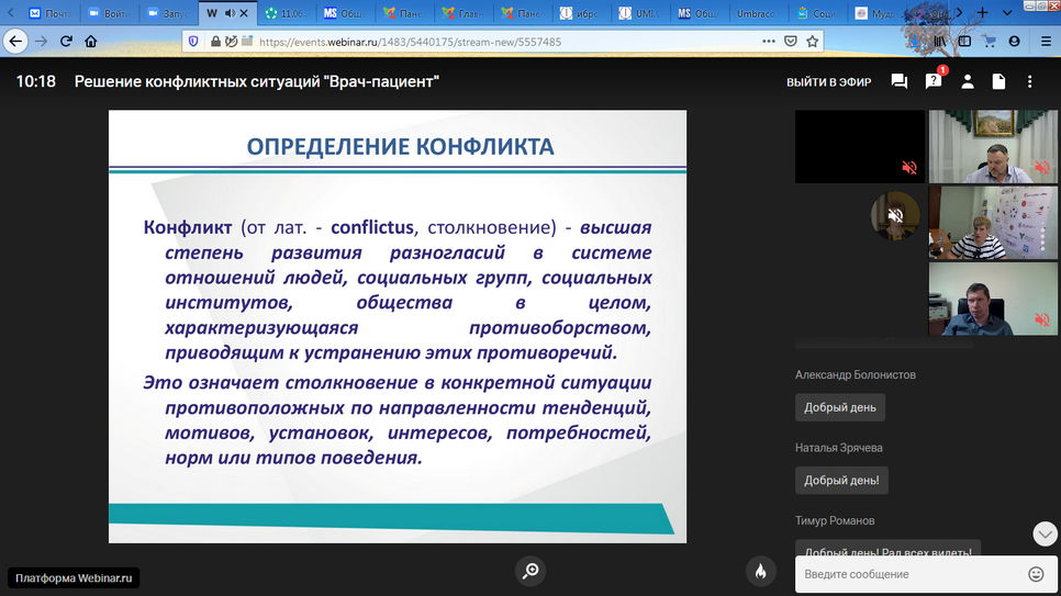 Песнева Ольга Вячеславовна, врач из Самары, советник Сопредседателя ВСП по вопросам организации здравоохранения рассказала о видах конфликтных ситуаций «Врач-пациент» и их решениях с точки зрения врача.