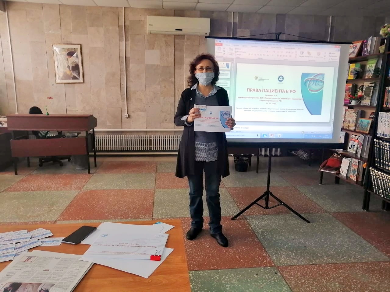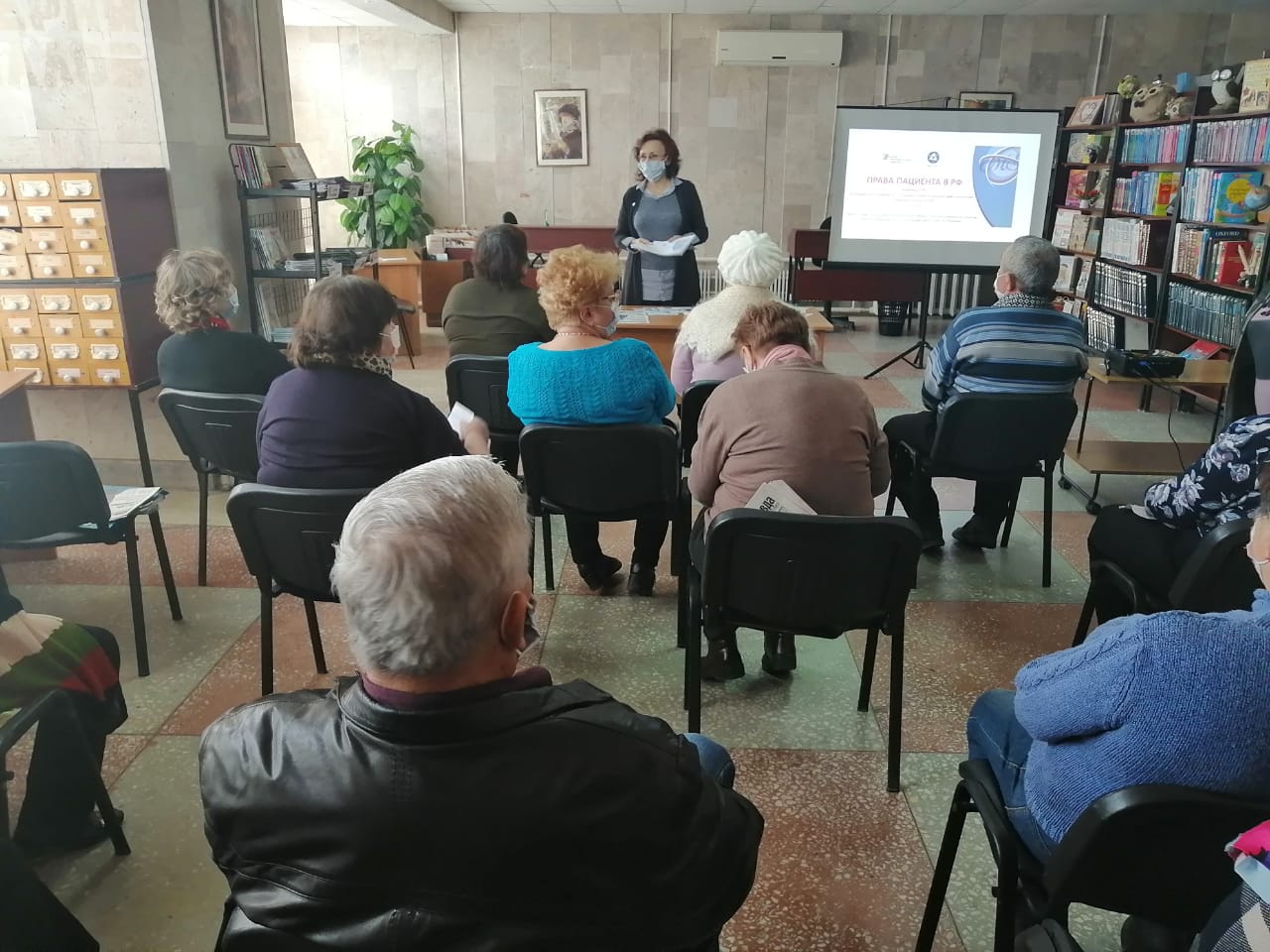 7 апреля во Всемирный день здоровья руководитель региональной общественной организации содействия защите прав пострадавших от теракта «Волга-Дон» Ирина Халай провела первое занятие «Школы прав пациентов» для участников Школы золотого возраста РОО «Волга-Дон», клуба «Арт-Леди», которая была организована в рамках проекта Общероссийской общественной организации инвалидов – больных рассеянным склерозом «Право на здоровье. Развитие общественного участия в повышении качества оказания медицинских услуг в городах присутствия ГК «Росатом», поддержанного Фондом президентских грантов.