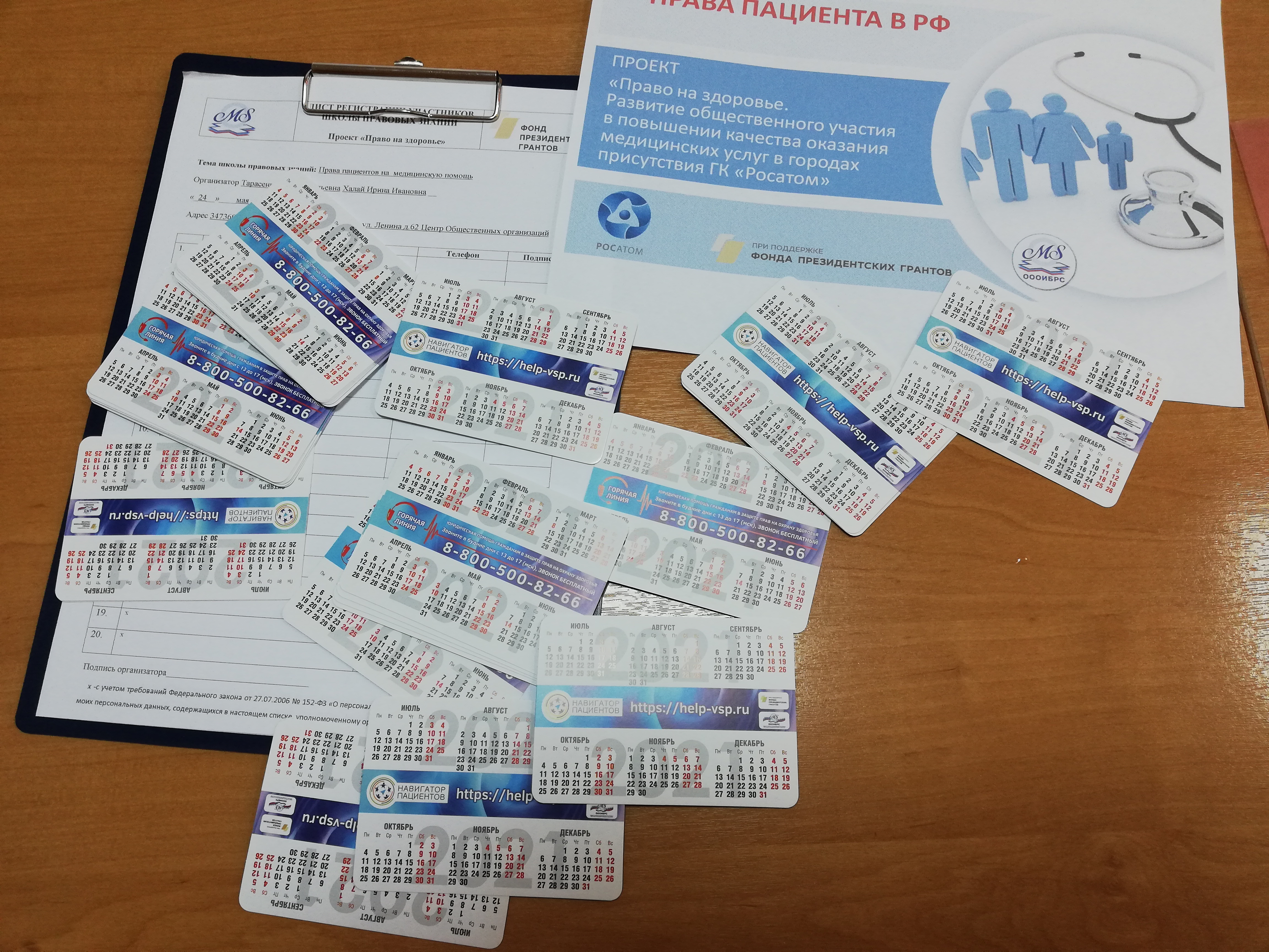 Каждому участнику занятия был вручен календарь с номером телефона горячей линии по правам пациента и сайтом "Новигатора пациентов".