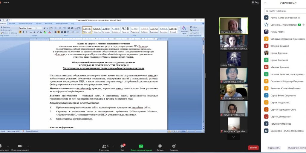 09 декабря 2021 года прошло очередное онлайн совещание в рамках проекта «Право на здоровье».