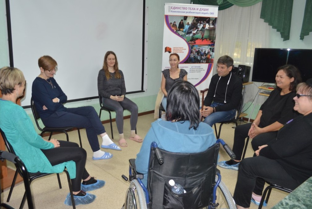 В сентябре проект продолжался в Центре семейной реабилитации инвалидов на Свободе, 71 проходили занятия классической йогой и йогой Айенгара, психологические занятия – тренинги, арт-терапия, игропрактика и кино-терапия