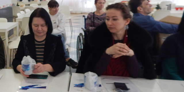С презентацией выступила координатор проекта Екатерина Клименко, осветившая информацию о команде проекта, основных направлениях деятельности в рамках проекта, целях и задачах, затронула вопрос действий, осуществленных для комплексной реабилитации людей с рассеянным склерозом.