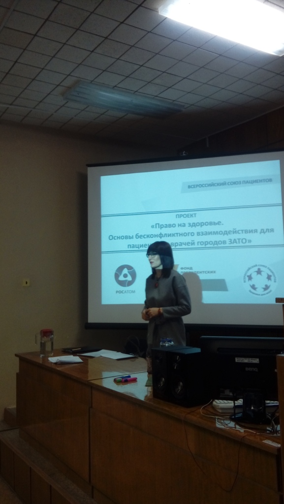 12 ноября 2019годав конференц-зале ФГБУЗ МСЧ №32 состоялся тренинг для медицинских работников г.Заречный Свердловской области, в рамках проекта «Право на здоровье. Основы бесконфликтного взаимодействия для пациентов и врачей городов ЗАТО» Всероссийского союза пациентов, поддержанного Фондом президентских грантов