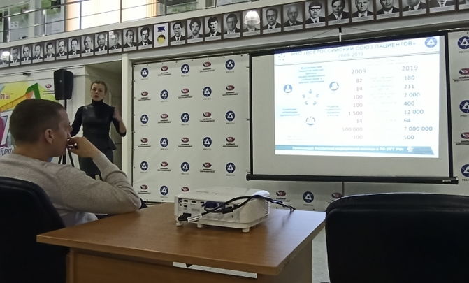 Свое выступление Подоксенова Е.А начала с информационной справки о деятельности НКО «Всероссийский союз пациентов». Как оказалось, никто из 22 участников не знал о существовании данной организации.
