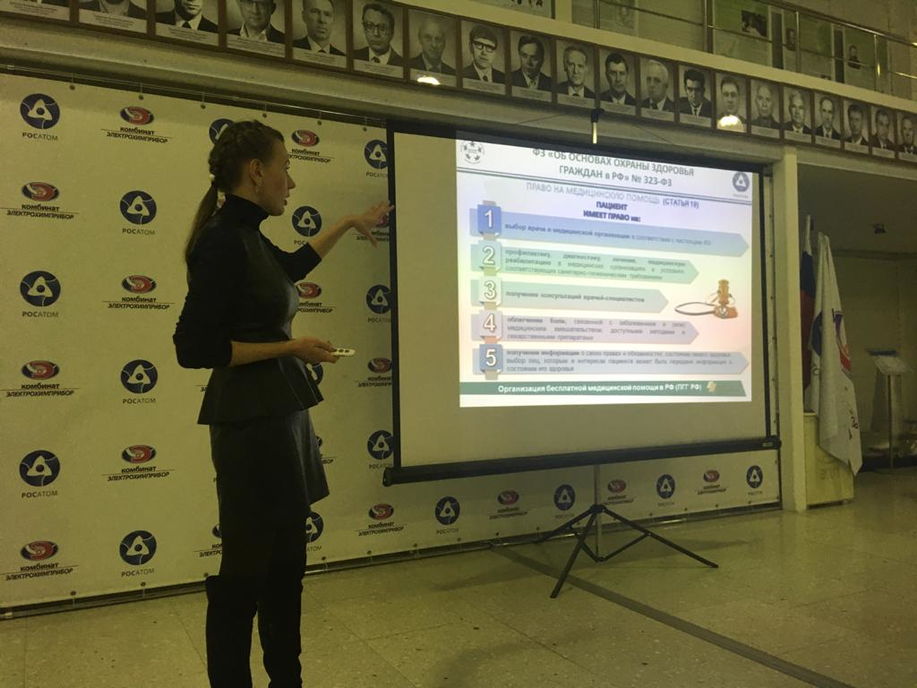 В рамках проекта «Право на здоровье. Основы бесконфликтного взаимодействия для пациентов и врачей городов ЗАТО», Всероссийского союза пациентов, поддержанного Фондом президентских грантов, в Учебно-выставочном центре (УВЦ) ФГУП «Комбинат «Электрохимприбор» (г. Лесной) состоялась школа правовой грамотности пациентов.