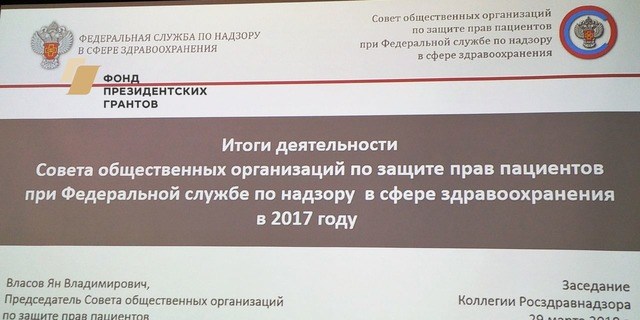 В заседании принял участие председатель Совета общественных организаций по защите прав пациентов Федеральной службы по надзору в сфере здравоохранения Ян Владимирович Власов, представивший «Итоги деятельности Совета общественных организаций по защите прав пациентов при Федеральной службе по надзору в сфере здравоохранения в 2017 году».