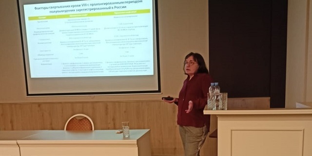 Очень интересным и познавательным было выступление детского врача гематолога Лаврентьевой Инны Николаевны, заведующей гематологическим отделением Морозовской детской городской больницы, она выступила с докладом «Особенности диагностики и лечения детей с гемофилией».
