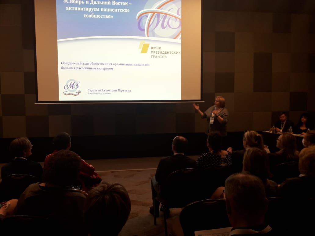 Во второй день конгресса состоялась презентация проекта Общероссийской общественной организации инвалидов больных-рассеянным склерозом «Сибирь и Дальний Восток – активизируем пациентское сообщество», поддержанного Фондом президентских грантов.