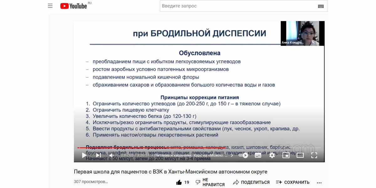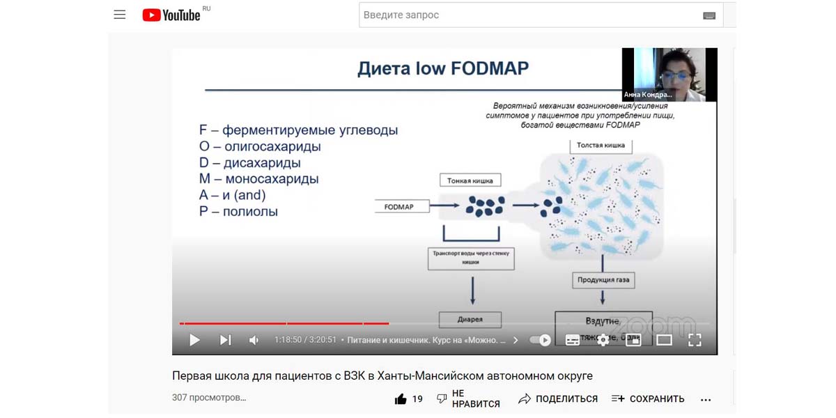 Кондратьева Анна Михайловна - главный внештатный специалист диетолог Минздрава России в УрФО, главный внештатный специалист диетолог Департамента здравоохранения ХМАО-Югры; врач-терапевт, диетолог БУ ХМАО – Югры «Сургутская клиническая травматологическая больница», к.м.н. Специалист подробно рассказала о подходе к питанию при ВЗК, сделав акцент на том, что блюда могут быть не только полезными, но и вкусными.
