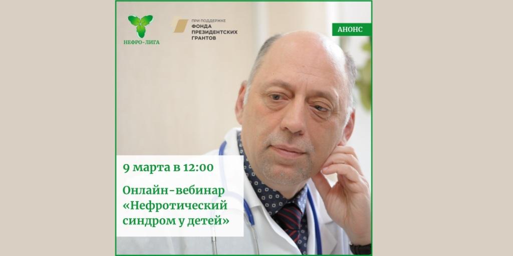 МООНП «НЕФРО-ЛИГА» приглашает родителей, детских нефрологов и педиатров 9 марта в 12:00 (время московское) на вебинар «Нефротический синдром у детей».