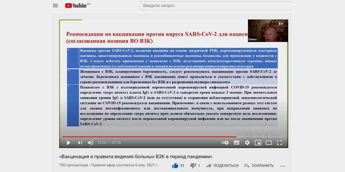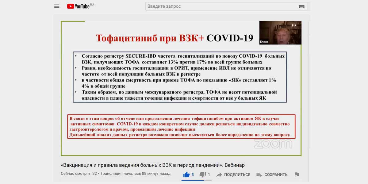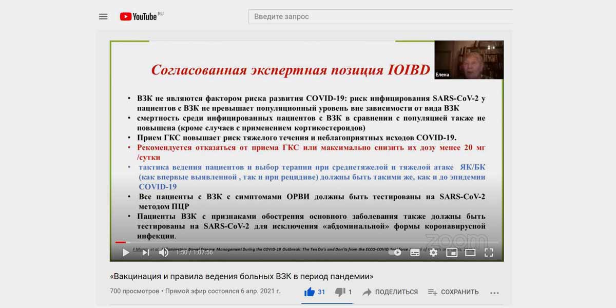 На эти и другие вопросы вы получите ответы, посмотрев запись вебинара на  тему «Вакцинация и правила ведения больных ВЗК в период пандемии».