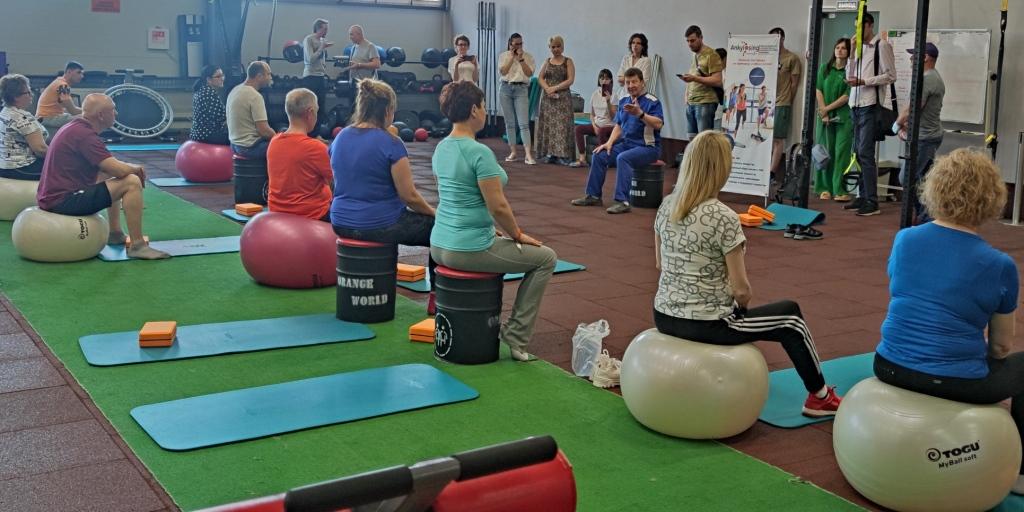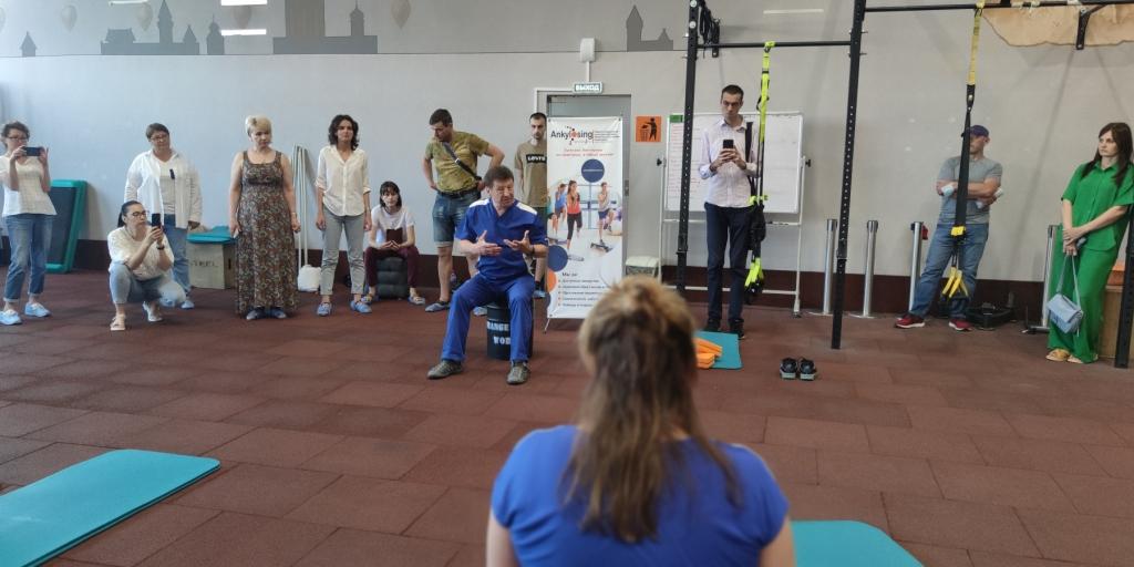 Традиционно самые яркие впечатления оставили практические занятия в Школе – мастер-класс по специальной лечебной физкультуре Кузякова Сергея Кузякова, автора курса ЛФК, инструктора-методиста НИИ Ревматологии им. В.А. Насоновой. Правильная физическая активность и точно рассчитанные нагрузки для пациентов с болезнью Бехтерева и другими ревматическими заболеваниями – вопрос сохранения подвижности и активности.