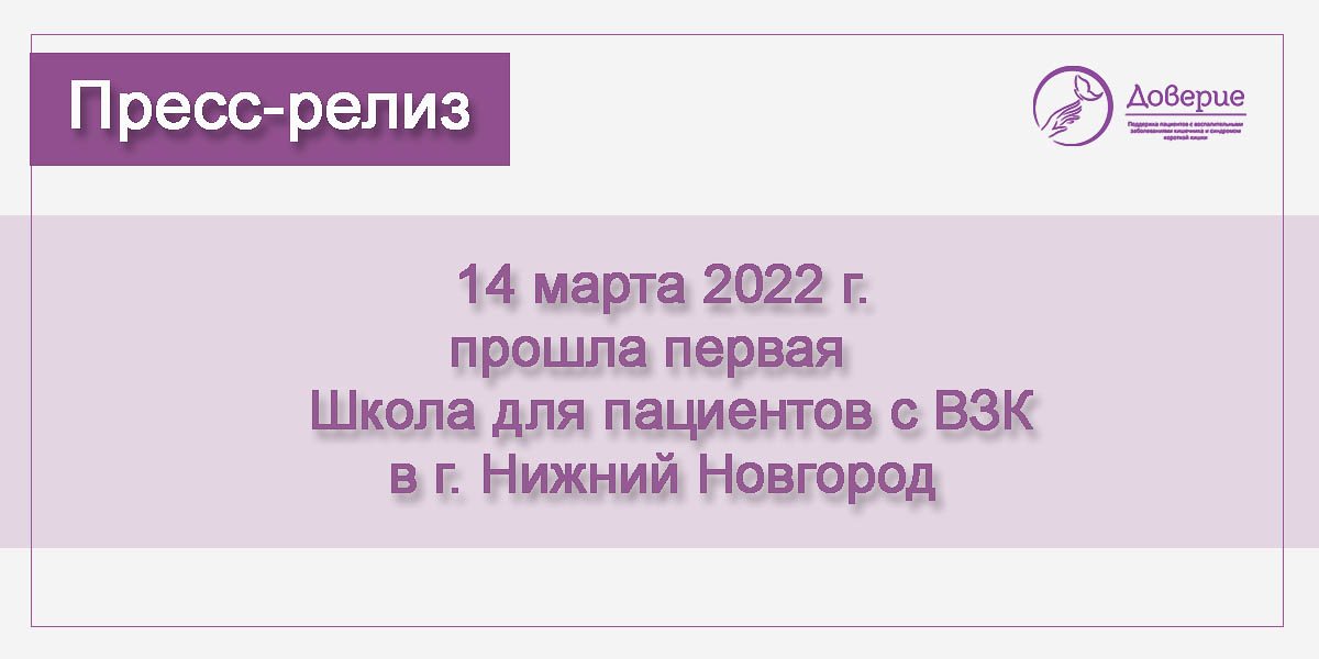 14 марта 2022 года впервые прошла Школа для пациентов с воспалительными заболеваниями кишечника в Нижнем Новгороде.