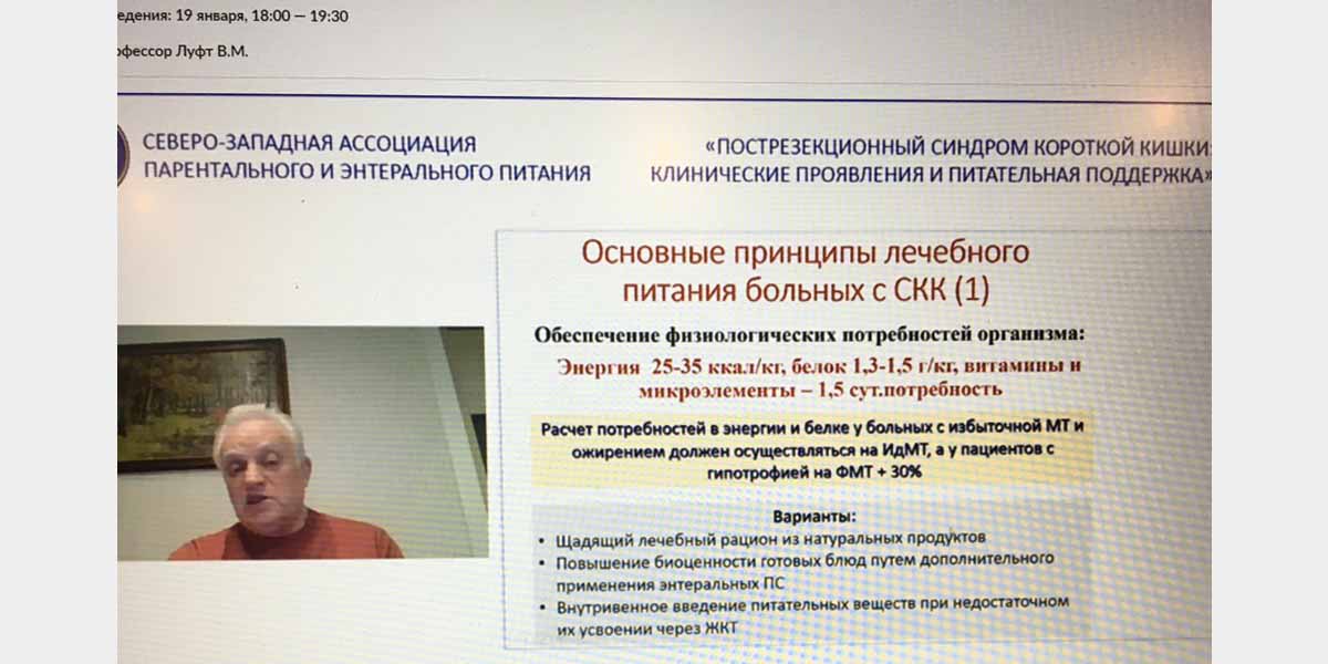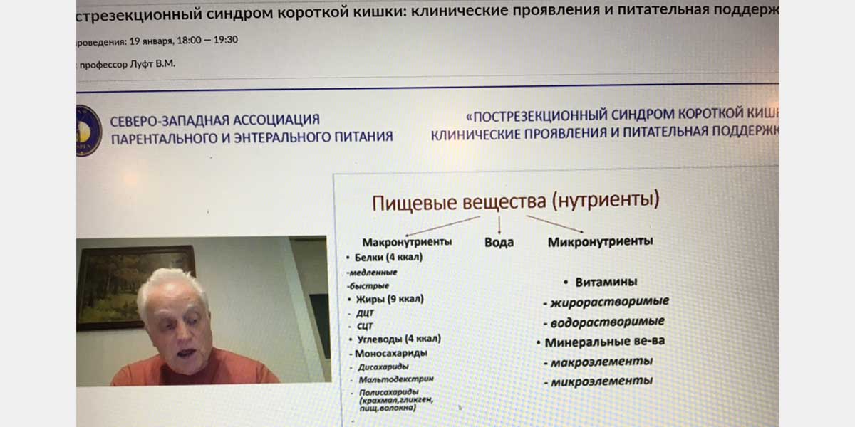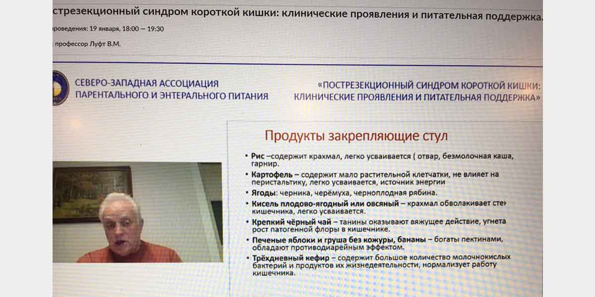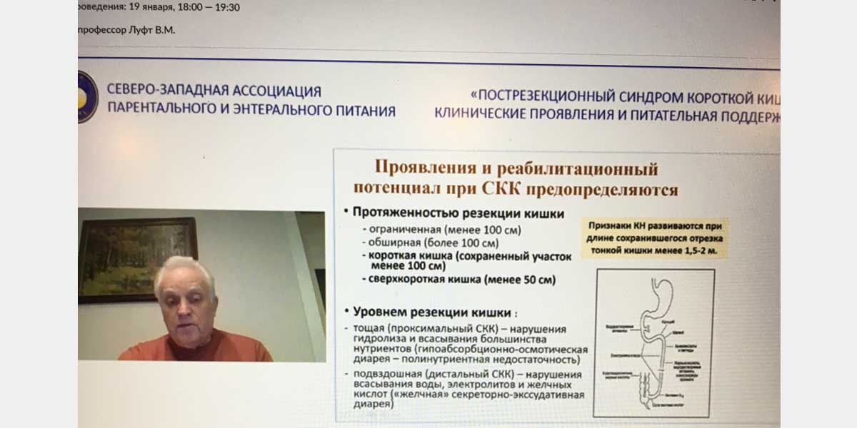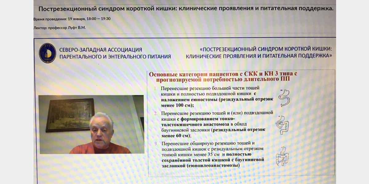 19 января 2021 года прошел второй вебинар для пациентов с синдромом короткой кишки Тема вебинара: «Возможность питательной поддержки с пострезекционным синдромом короткой кишки».