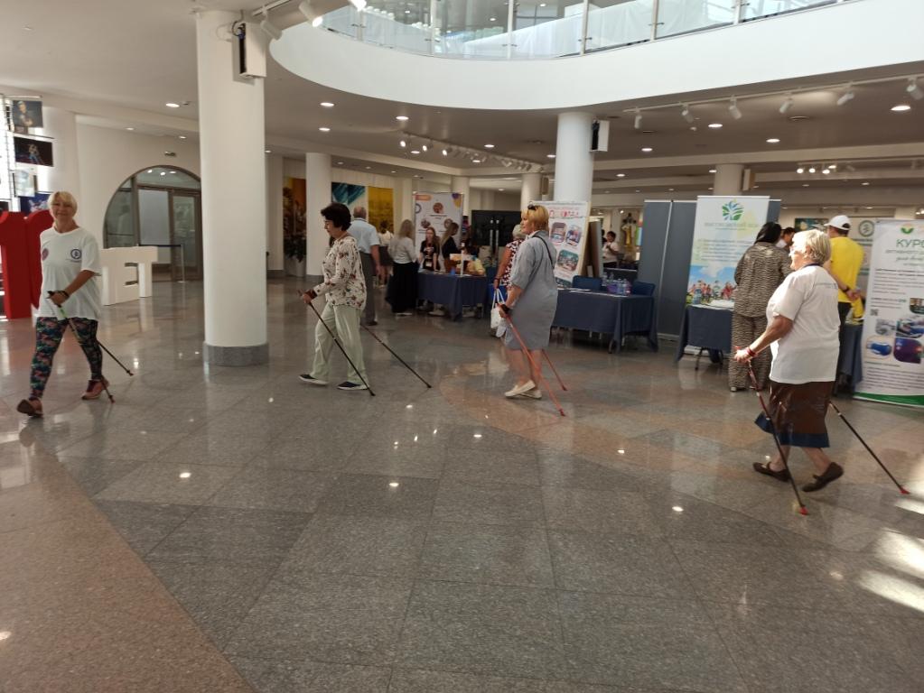 В рамках презентации деятельности общества пациентов состоялся мастер-класс по скандинавской ходьбе под руководством Елены Леончук, руководителя общественной организации «Nordic-Yar», в котором участвовали все желающие.