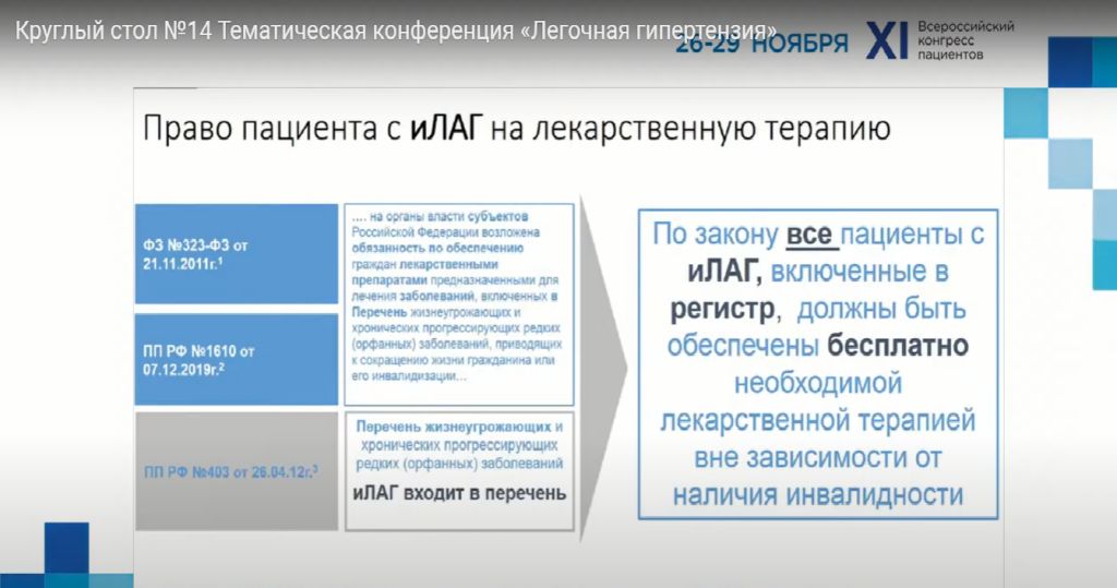 Выступление прошло в рамках сессии, посвященной проблемам лекарственного обеспечения пациентов с разными формами легочной артериальной гипертензии.