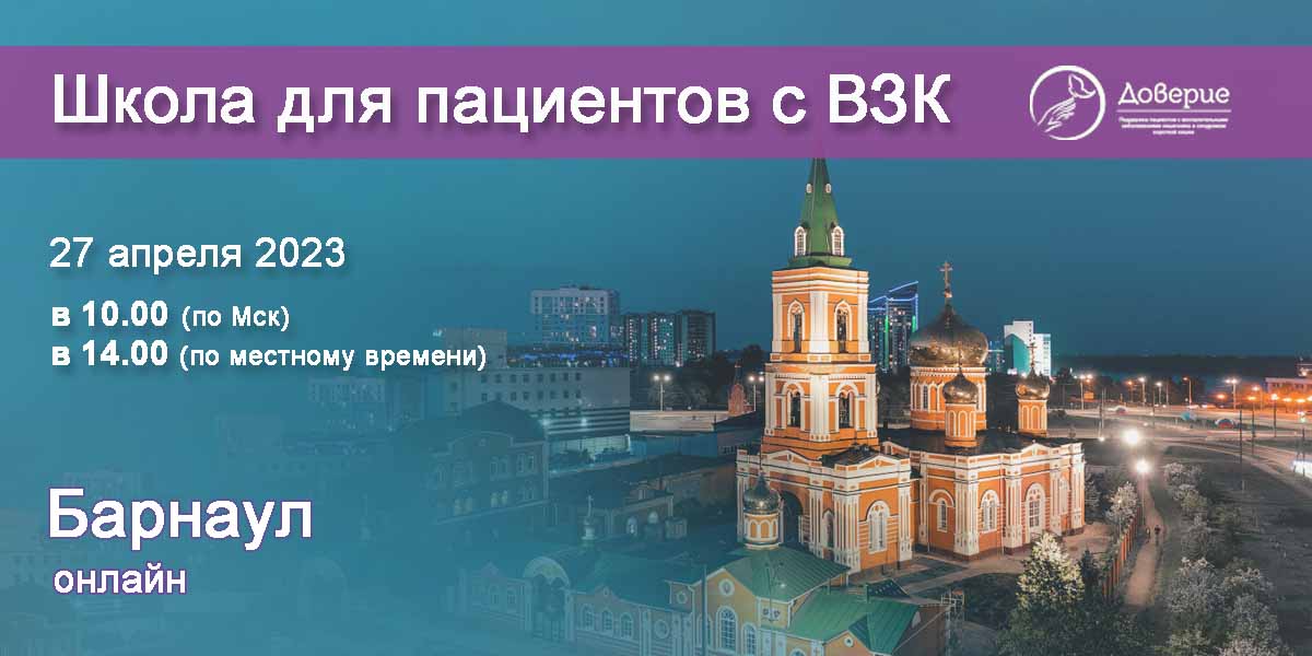 Мы продолжаем цикл вебинаров "Факультеты здоровья ВЗК" для пациентов с воспалительными заболеваниями кишечника. Впервые проводится Школа со специалистами г. Барнаул, которая состоится в режиме онлайн