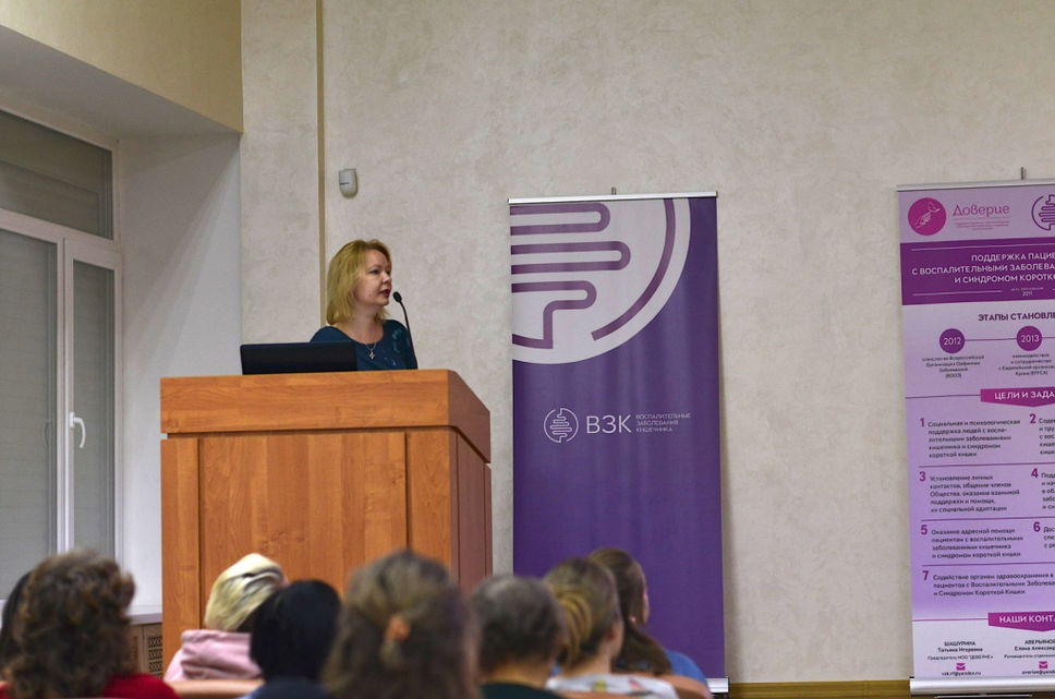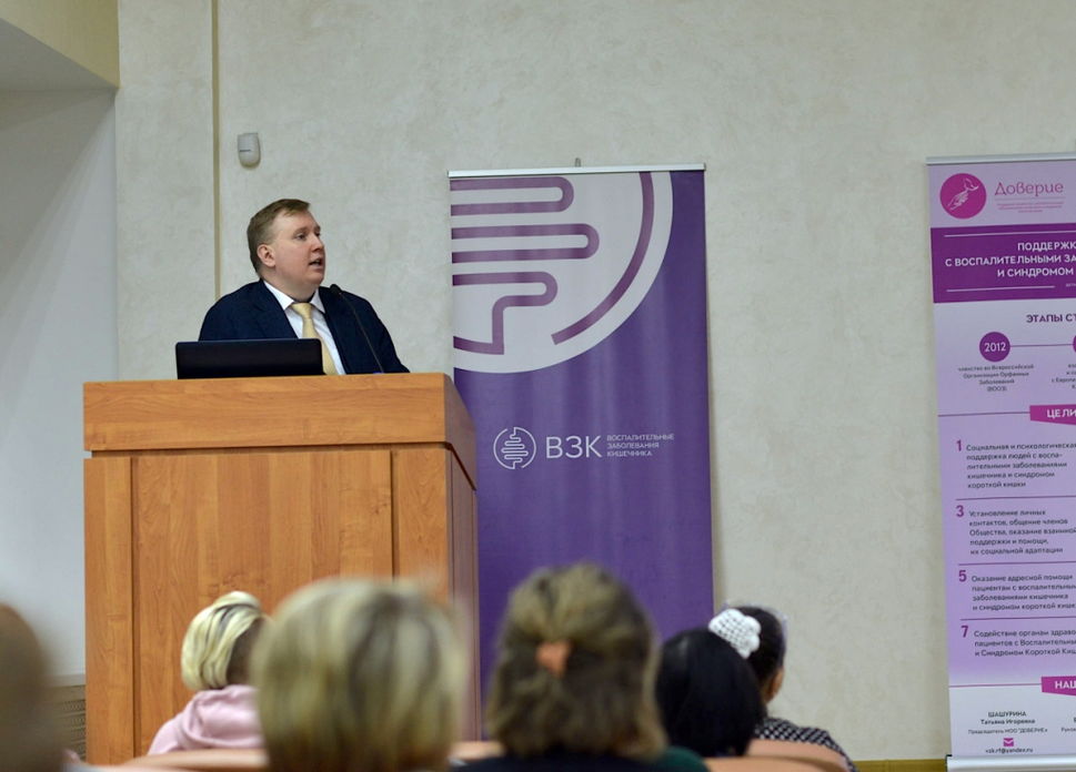 Веселов Алексей Викторович, руководитель отдела по организационной работе и развитию колопроктологической службы ФГБУ «НМИЦ колопроктологии им. А.Н. Рыжих» Минздрава России, ознакомил с горячими новостями о новых критериях получения инвалидности, подробно рассказав о нюансах подготовки к прохождению комиссии. Затем Алексей Викторович осветил ему, которые просили заявить наши пациенты. «Клинические исследования – плюсы и минусы?» Данная тема была впервые затронута в рамках наших школ и вызвала живой интерес зала.