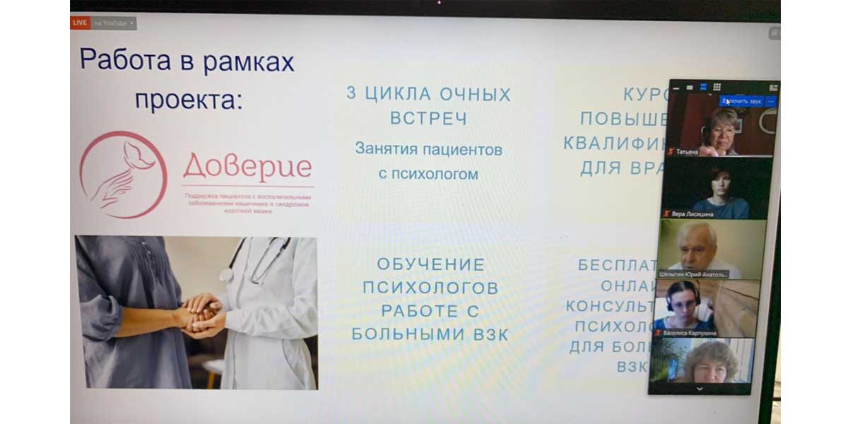 В 2020-2021 году Межрегиональная общественная организация поддержки пациентов с воспалительными заболеваниями кишечника (ВЗК) и синдромом короткой кишки (СКК) «Доверие» при поддержке ФГБУ «НМИЦ колопроктологии имени А.Н. Рыжих» Минздрава России, Института Практической Психологии и Психологического консультирования, Центра гуманитарных технологий и исследований «Социальная Механика» реализовали проект «Психология доверия (система психологической оффлайн и онлайн поддержки пациентов с ВЗК для повышения качества жизни и приверженность лечению)». Это первый общероссийский проект психологической помощи пациентам с ВЗК.
