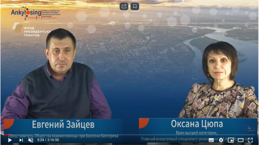 31 октября 2020 в режиме вебинара состоялась очередная Школа для пациентов с болезнью Бехтерева для жителей Барнаула и Алтайского края, посвященная теме психологической поддержки.